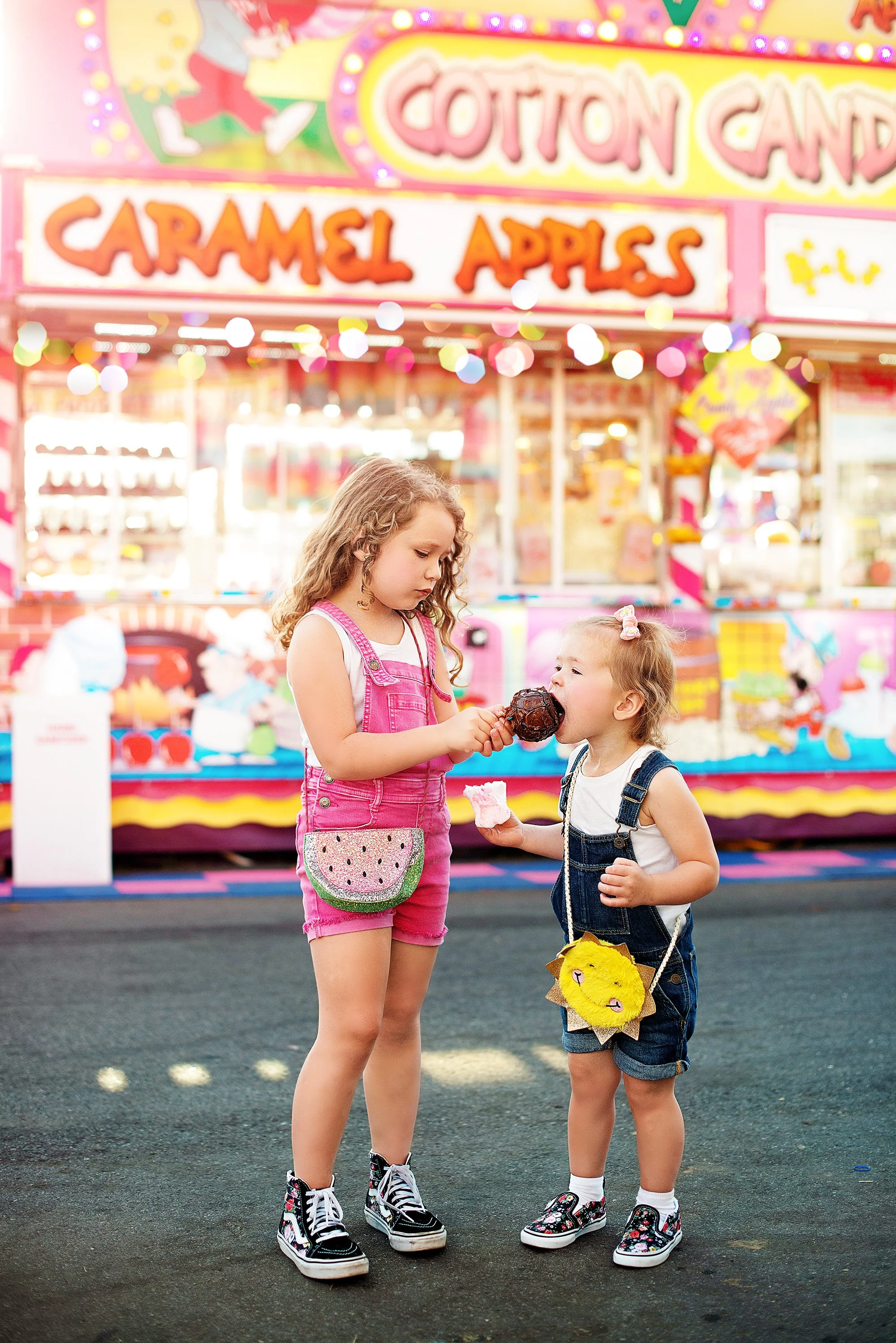 These sessions are perfect for capturing playful moments with kids — enjoying treats, exploring the fair, and soaking in all the excitement. The colorful lights and energy of the fair create images that feel joyful, nostalgic, and full of childhood magic.