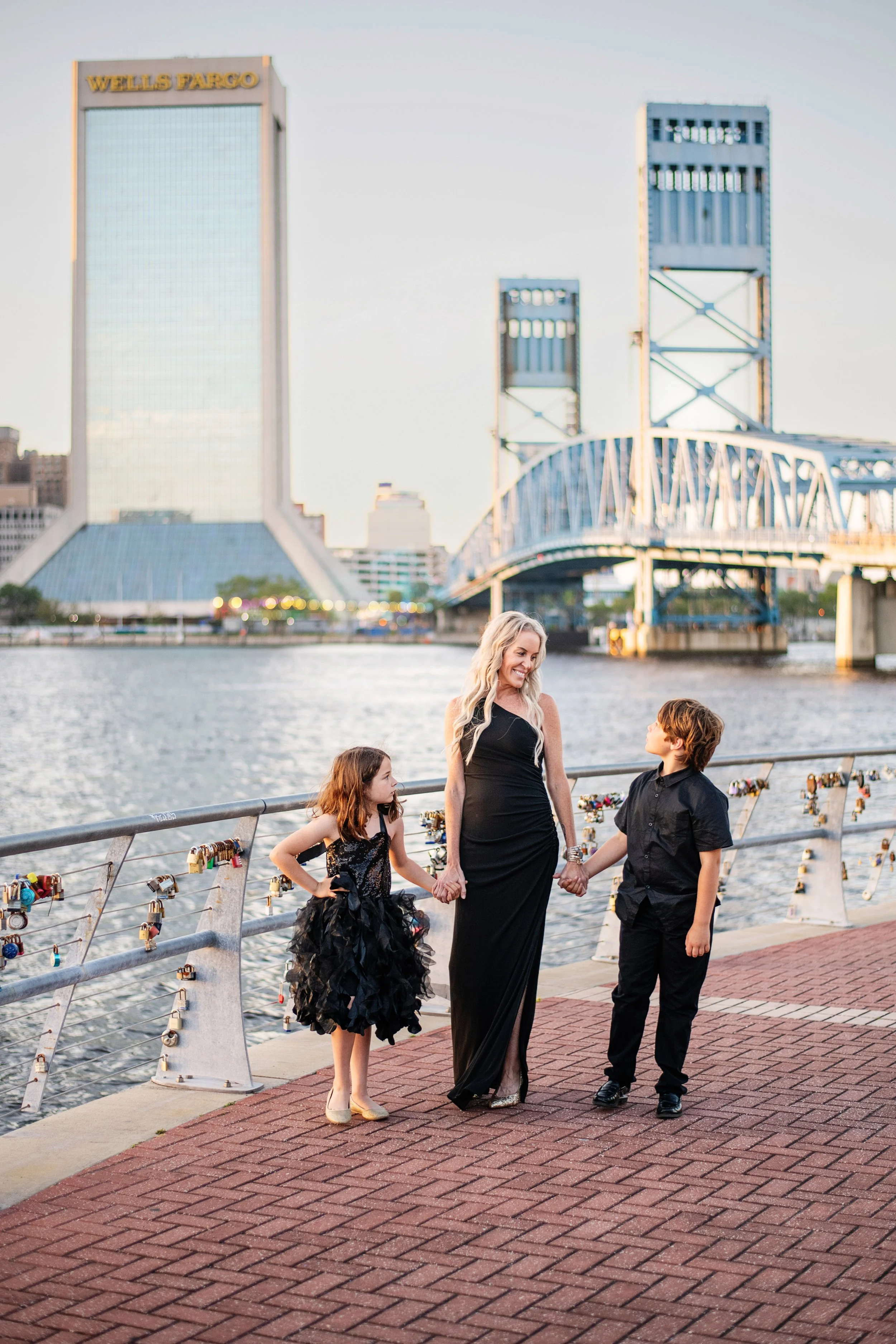 Riverfront Park in Downtown Jacksonville offers a beautiful city backdrop with a mix of skyline views, waterfront scenery, and artistic details. One of the highlights of this location is the Jacksonville skyline across the river, which looks especially beautiful as the sun begins to set.