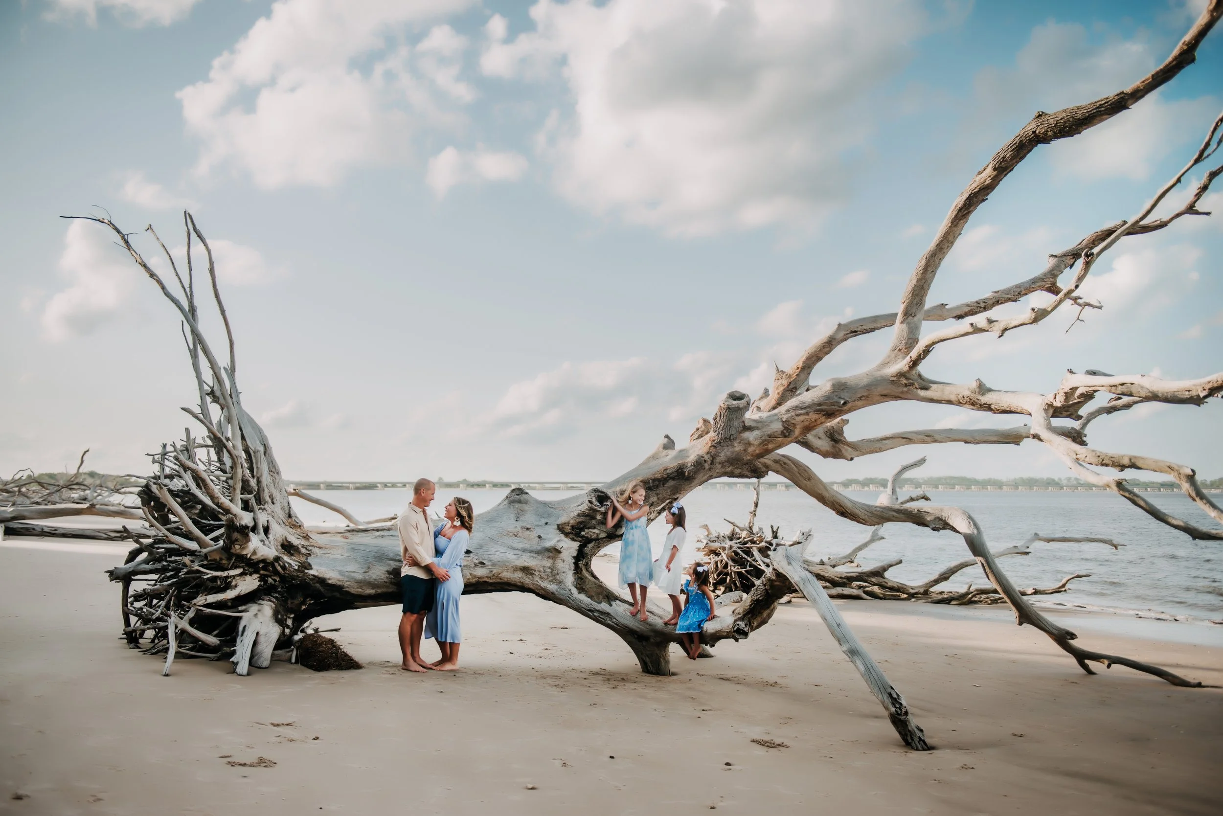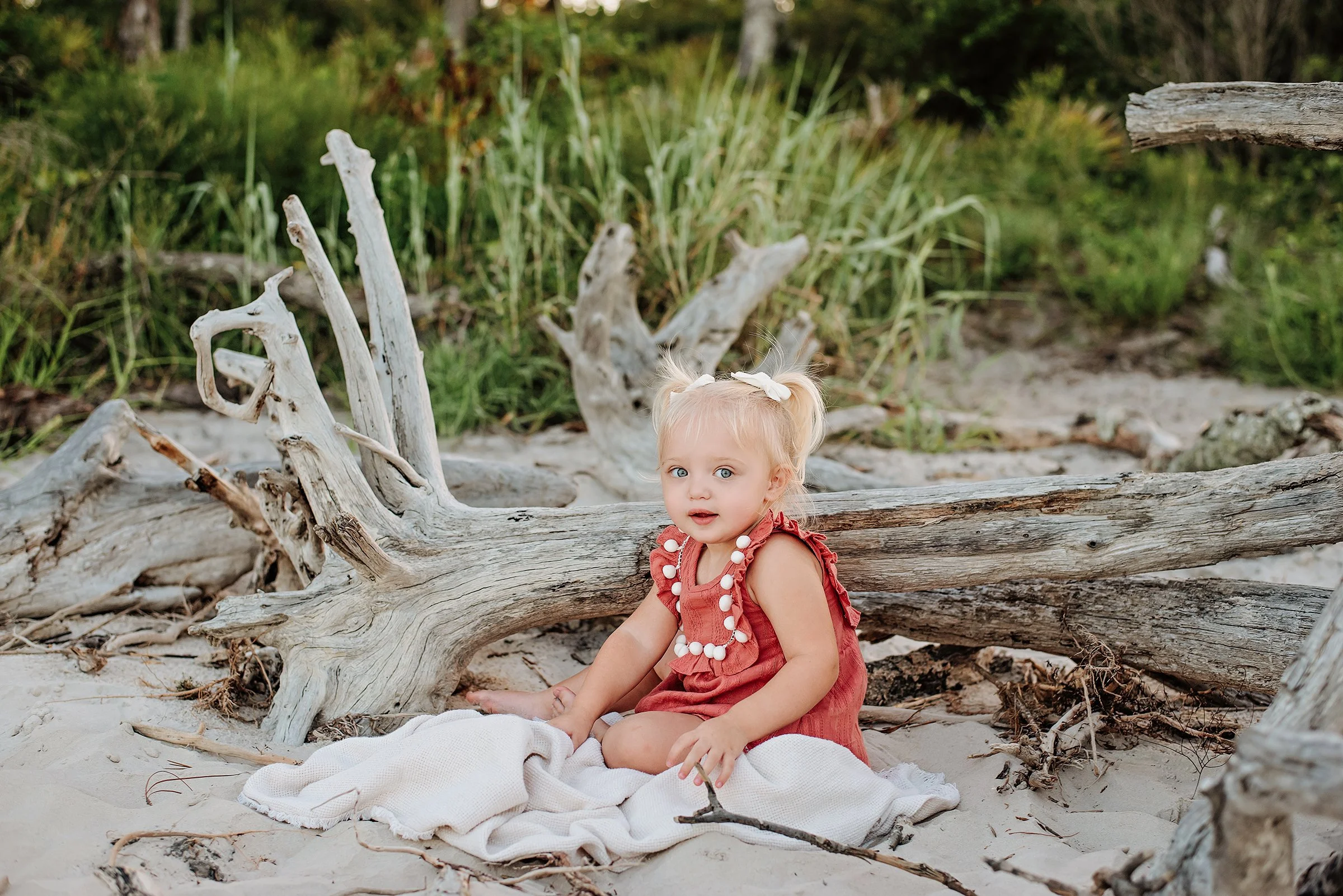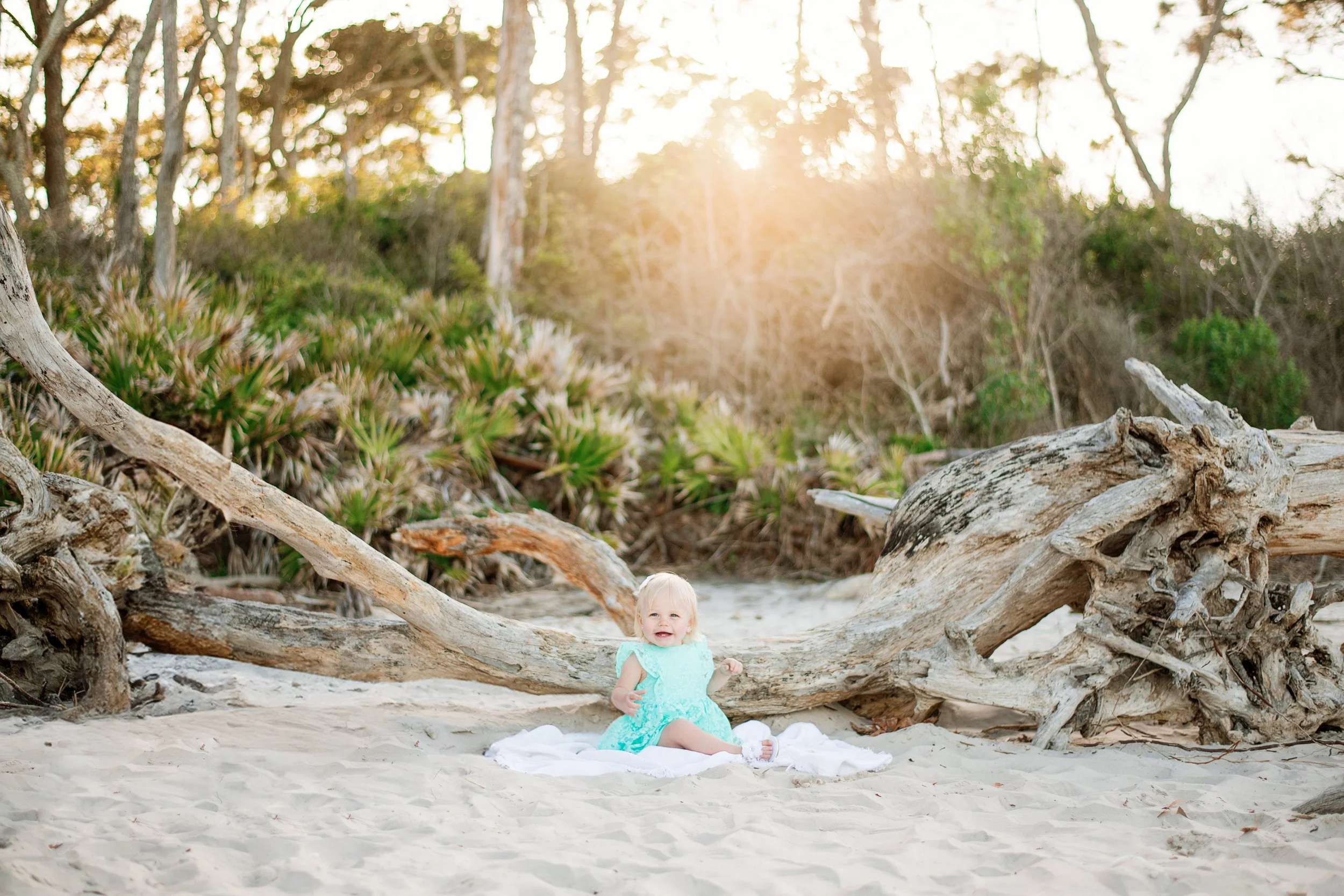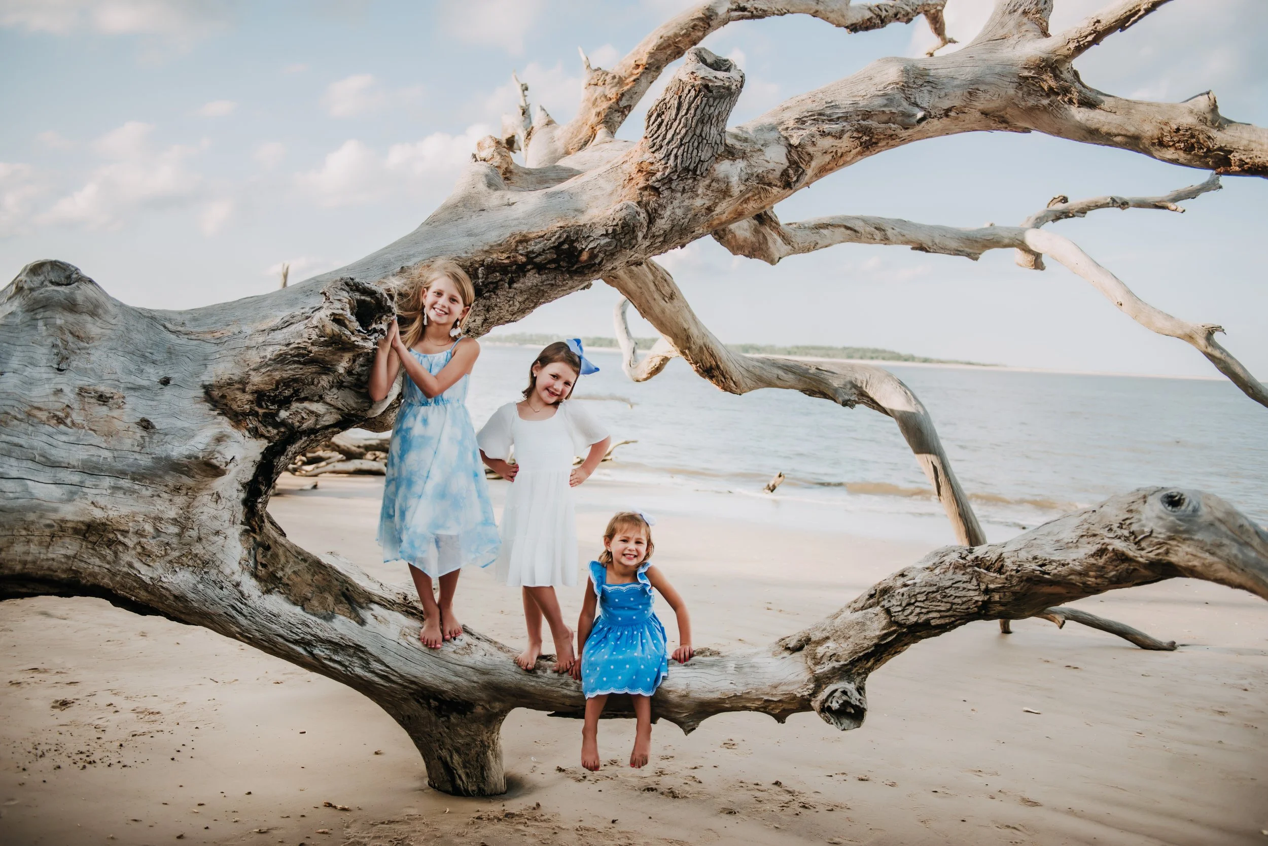 Big Talbot Island, often called Driftwood Beach or Boneyard Beach, is one of the most unique and breathtaking locations in our area. The shoreline is covered with large, weathered driftwood trees that create a dramatic and artistic backdrop you won’t find anywhere else nearby. It’s a beautiful location for all types of sessions and milestones — I’ve even photographed a newborn session here.
