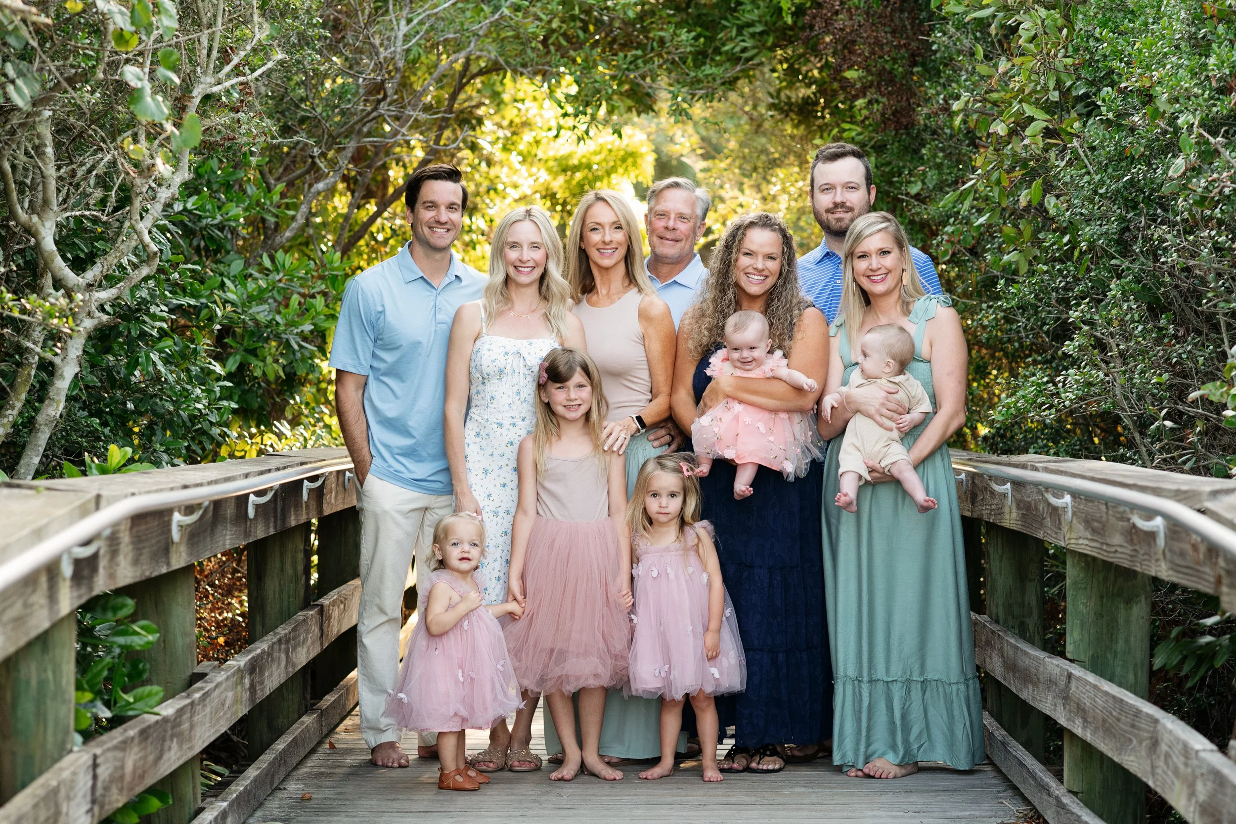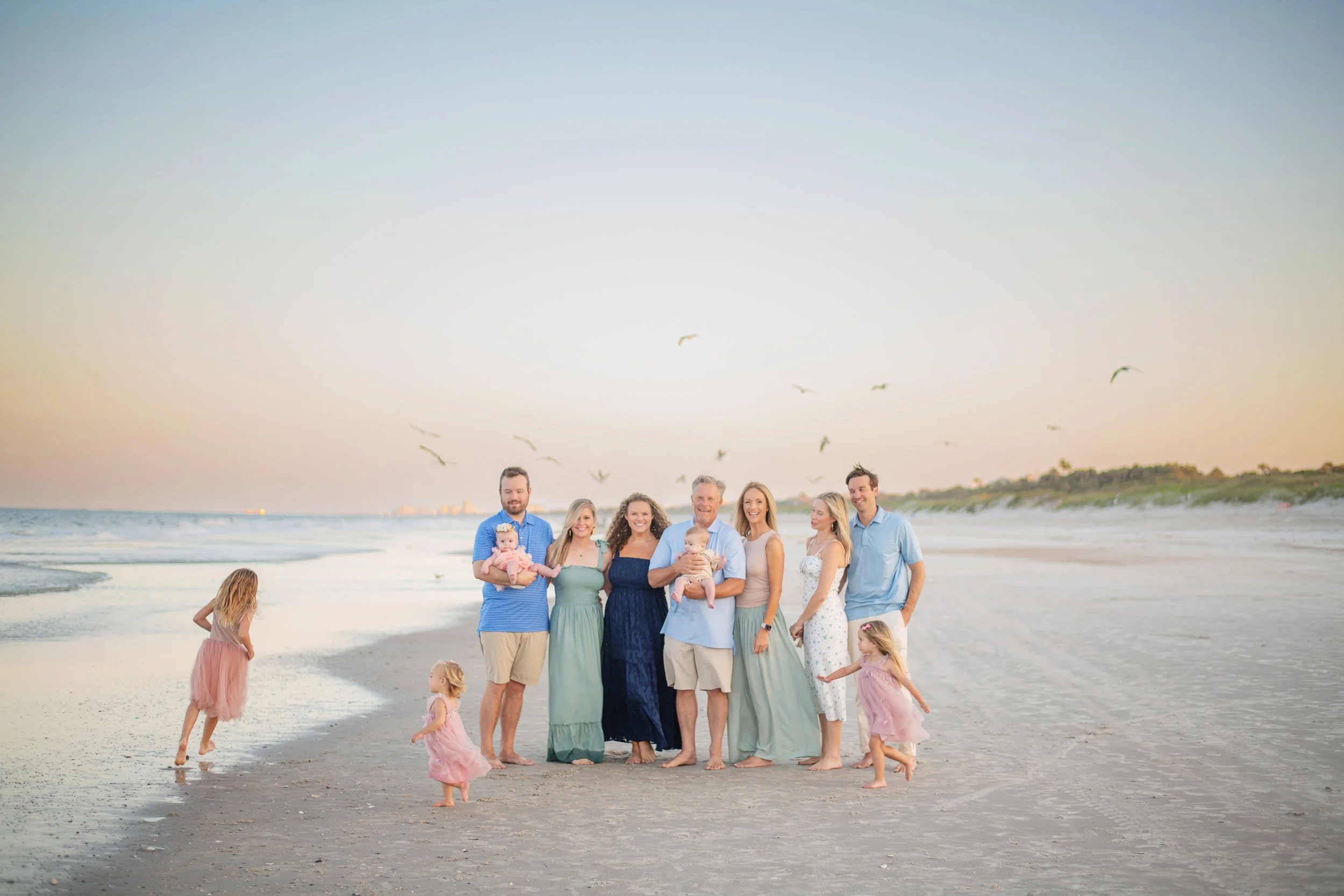 Then we can step right onto the beach, where the open shoreline and evening light create those classic, airy beach portraits. The variety here makes Hanna Park a wonderful choice for families, milestones, and extended family sessions.